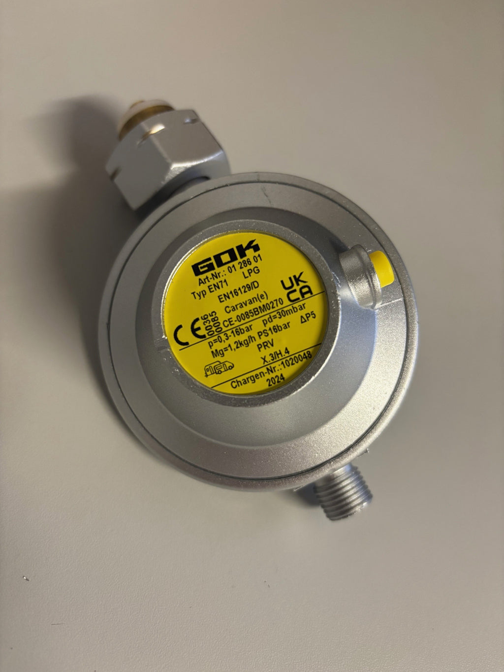 GOK presenteert de universele drukregelaar van 30 mbar met afblaasbeveiliging. De reguliere druk op een gasfles is bij 15°C circa 7 bar. Dat is te hoog en bovendien onregelmatig en dat levert problemen in de aangesloten apparatuur op. Daarom is een drukregelaar nodig. Die regelaar koppelt een gasfles aan de gasinstallatie en zorgt voor een constante en juiste druk op de aangesloten apparatuur.
